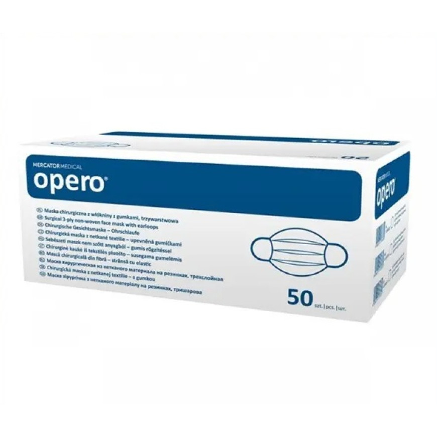 Маска одноразова Opero 3-х шарова з вушними петлями Синя 50 шт