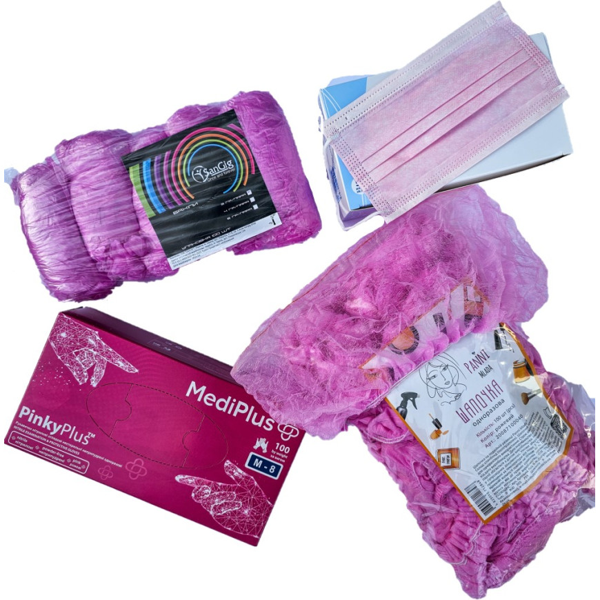 Набір Рожевий №2 (рукавички+маска+бахіли+шапочки)
