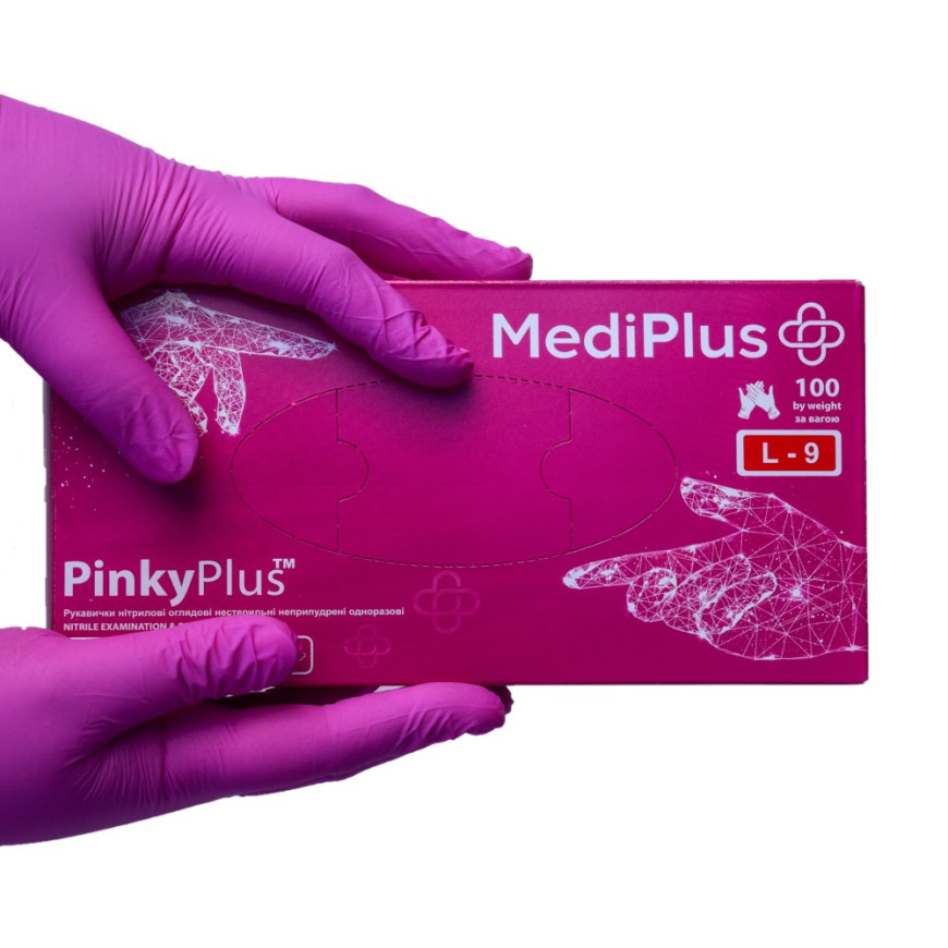 Рукавички нітрилові MediPlus PinkyPlus 3,7 г Темно-Рожеві 100 шт