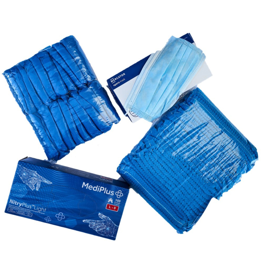 Набір Синій №1 (рукавички+маска+бахіли+шапочки)