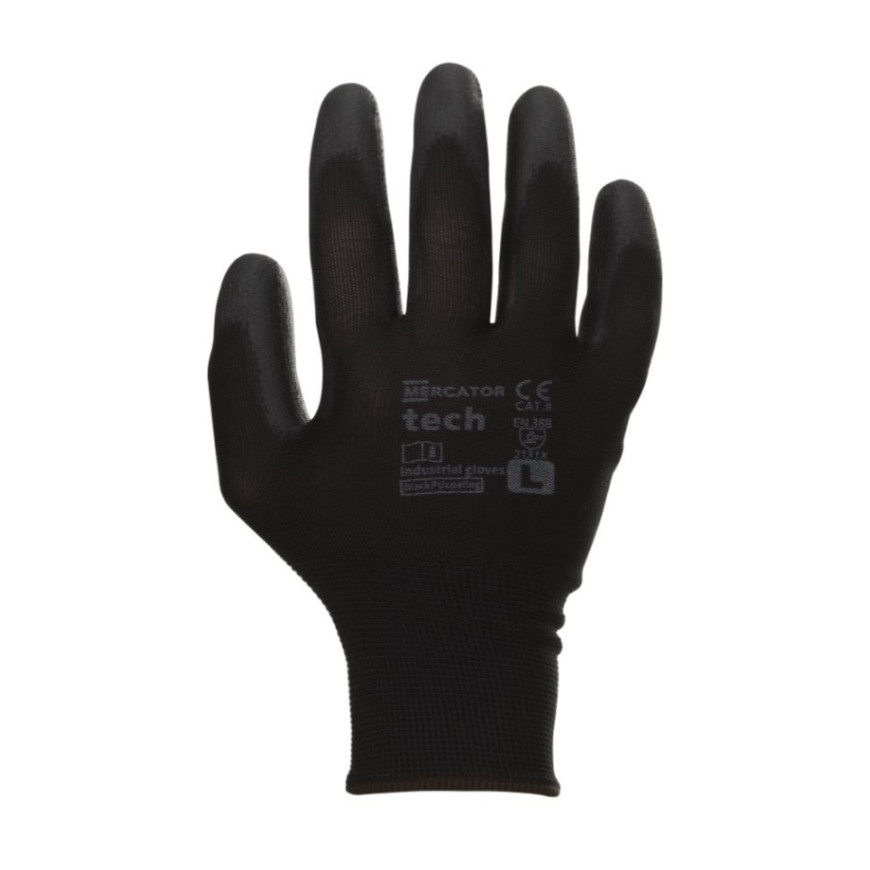 Рукавички робочі поліестерові Mercator tech з латексним покриттям Чорні 24 шт