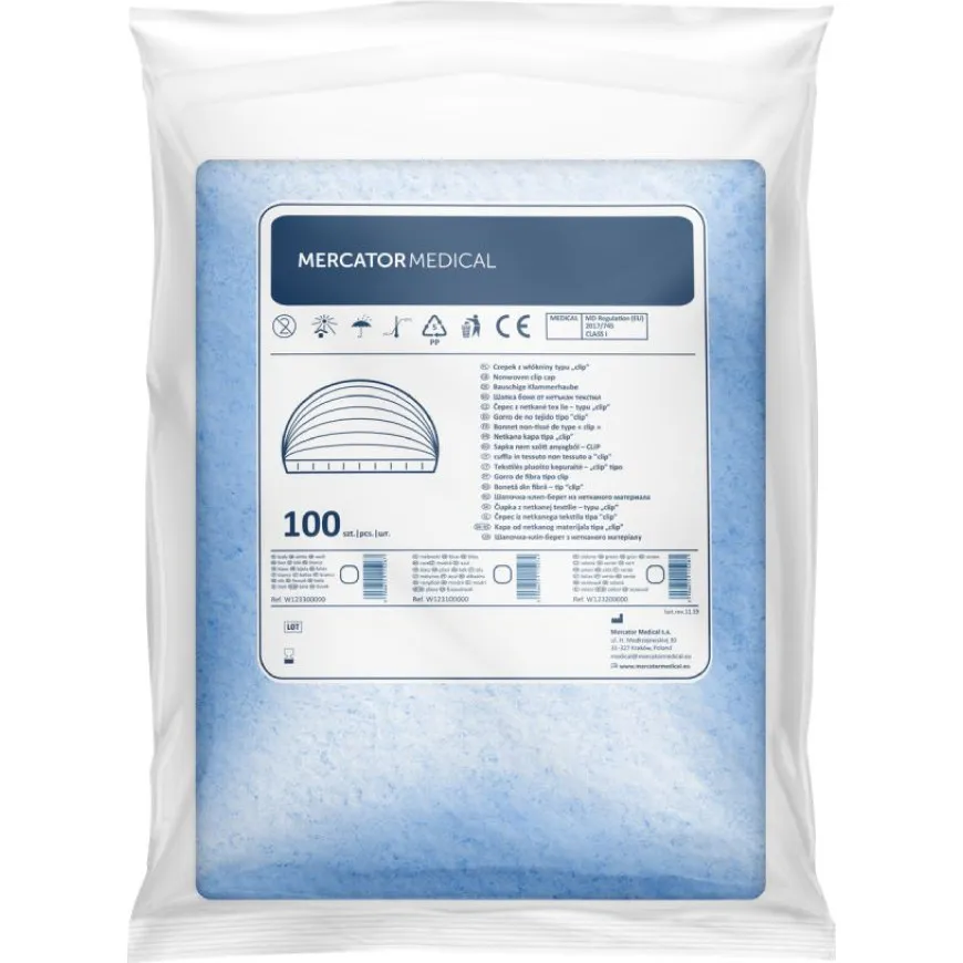 1. Матеріал: Одноразові кліп-берети виготовляються з нетканих матеріалів, таких як спанбонд (спанлейс) Spunbond та поліпропілен.